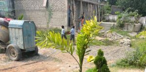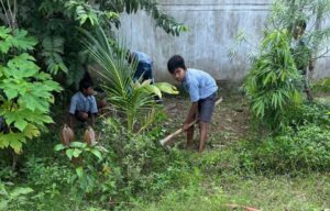 यहाँ तस्वीरें साफ दिखाती हैं कि नन्हें बच्चे फावड़े थामें स्कूल परिसर की सफाई कर रहे हैं।